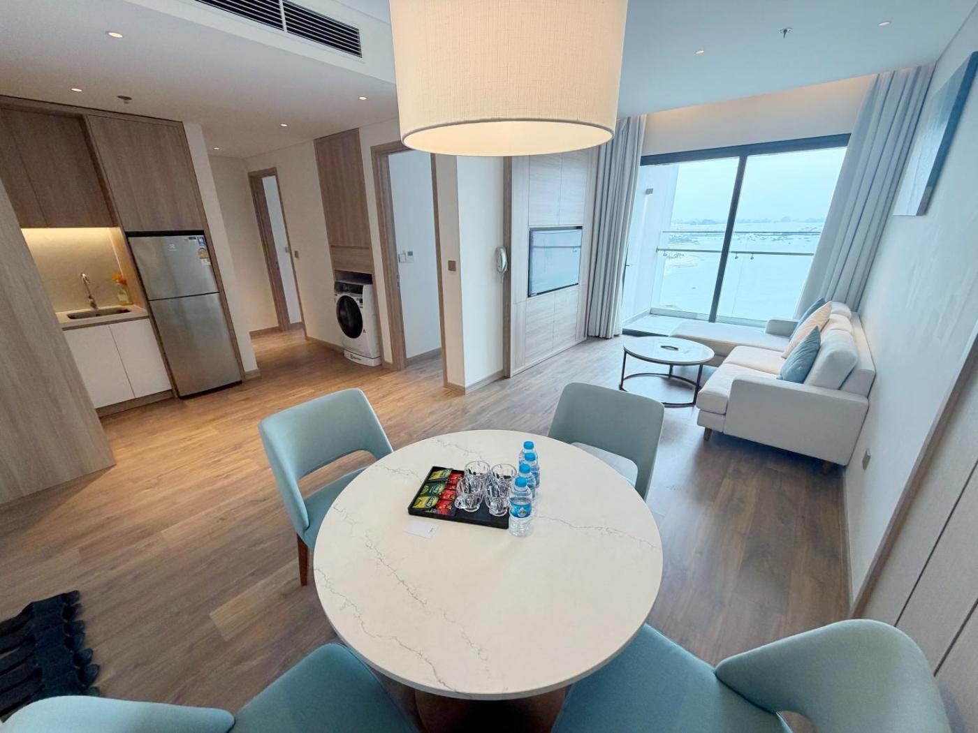 Two-Bedroom Apartment. This apartment offers a pool with a view. This spacious apartment comprises 1 living room, 2 separate bedrooms and 2 bathrooms with a bath and free toiletries. Guests can make meals in the kitchen that comes with a stovetop, a refrigerator, kitchenware and an electric kettle. The air-conditioned apartment provides a flat-screen TV, a washing machine, soundproof walls, a seating area as well as sea views. The unit offers 2 beds. ;
