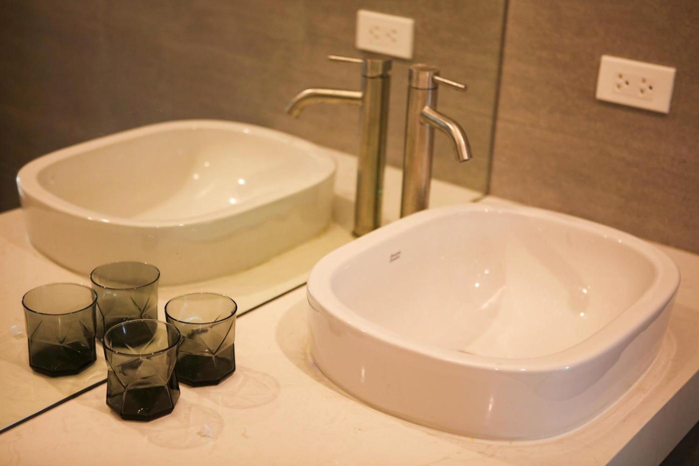 Queen Studio. Guests can make meals in the kitchenette that comes with a refrigerator, kitchenware, a microwave and an electric kettle. The studio provides air conditioning, a washing machine, a balcony with city views as well as a private bathroom featuring a bath or a shower. The unit offers 1 bed. ;