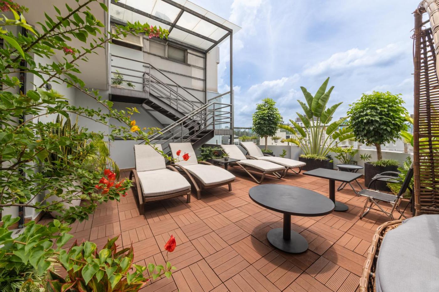 Deluxe Suite. Featuring large windows overlooking the city, this air-conditioned twin room has a seating area, a flat-screen TV with cable channels and an electric kettle. The en suite bathroom offers shower facilities and a hairdryer. Inclusion: - Rooftop pool access ;