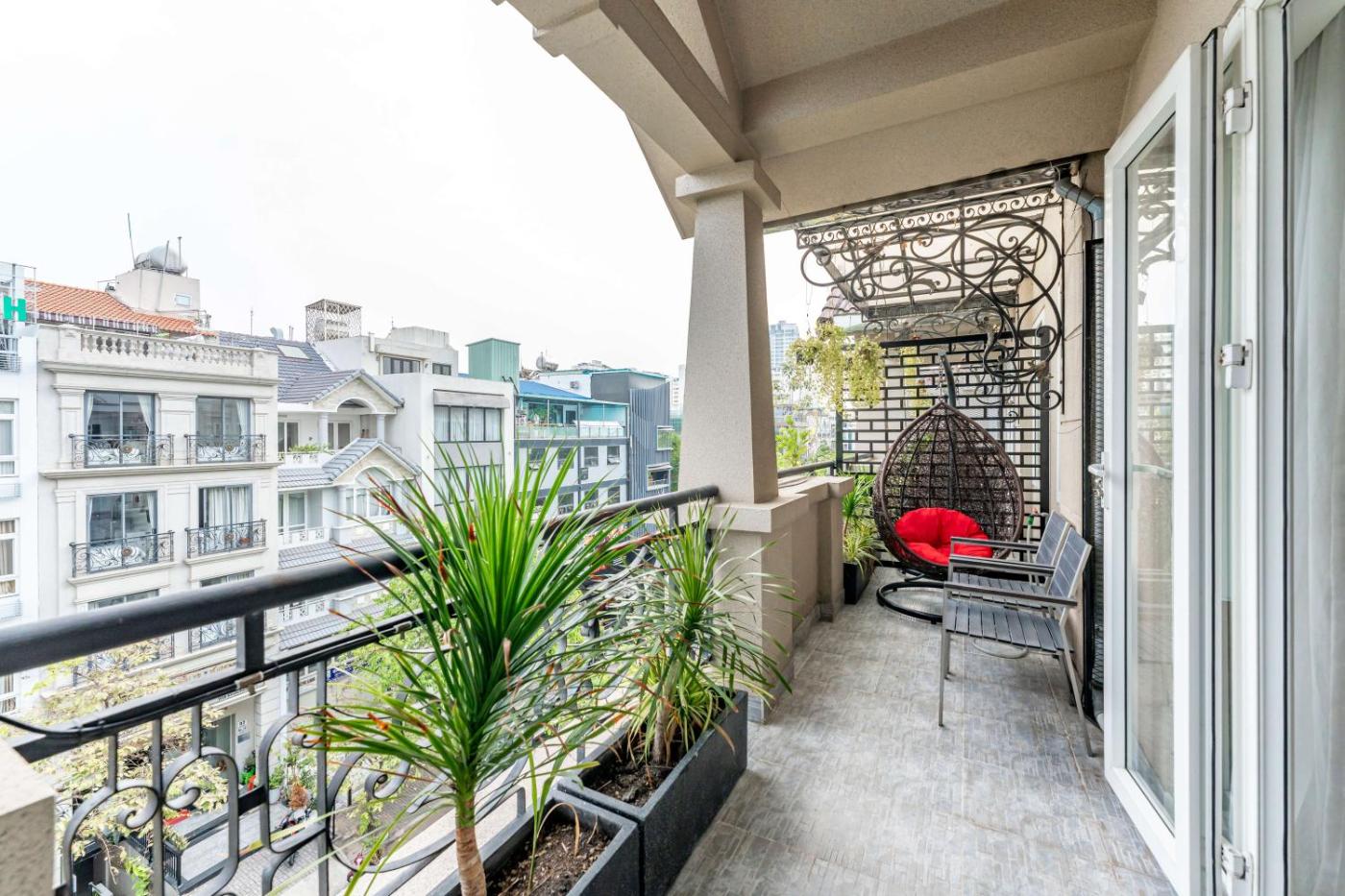 King Suite with Balcony. This suite comes with 1 living room, 1 separate bedroom and 1 bathroom with a bath and free toiletries. Boasting a terrace with city views, this suite also features air conditioning and a flat-screen TV. The unit has 2 beds. ;