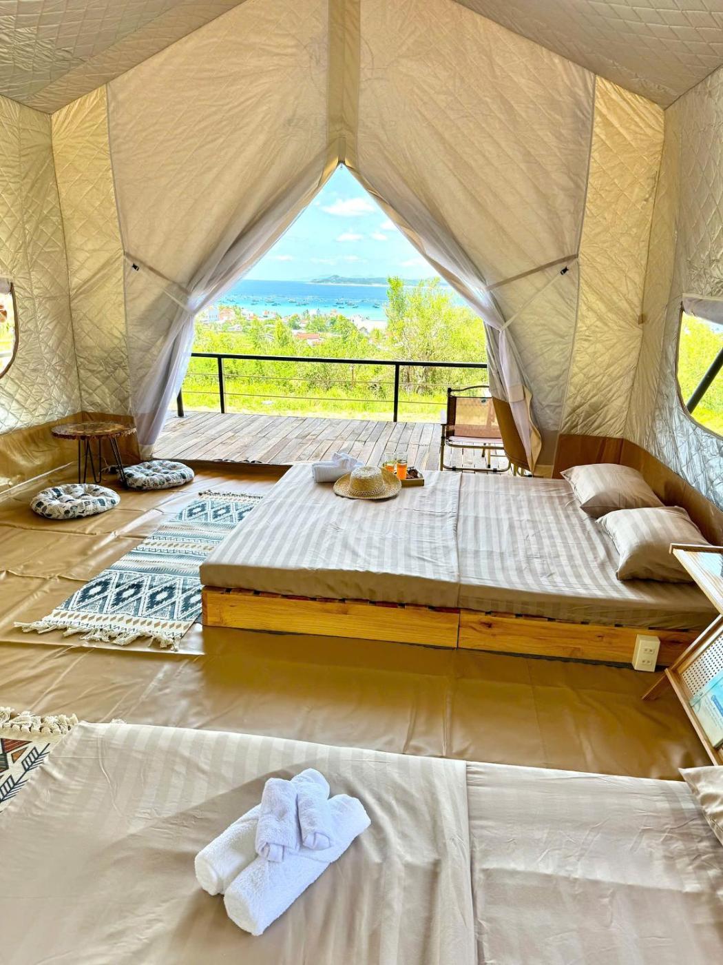 Tent. The tent has a dining area, a terrace and sea views. The unit has 2 beds. ;